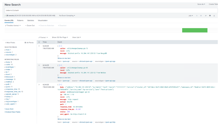 IPAM-API forwards all HTTP & APP events to Splunk HEC.